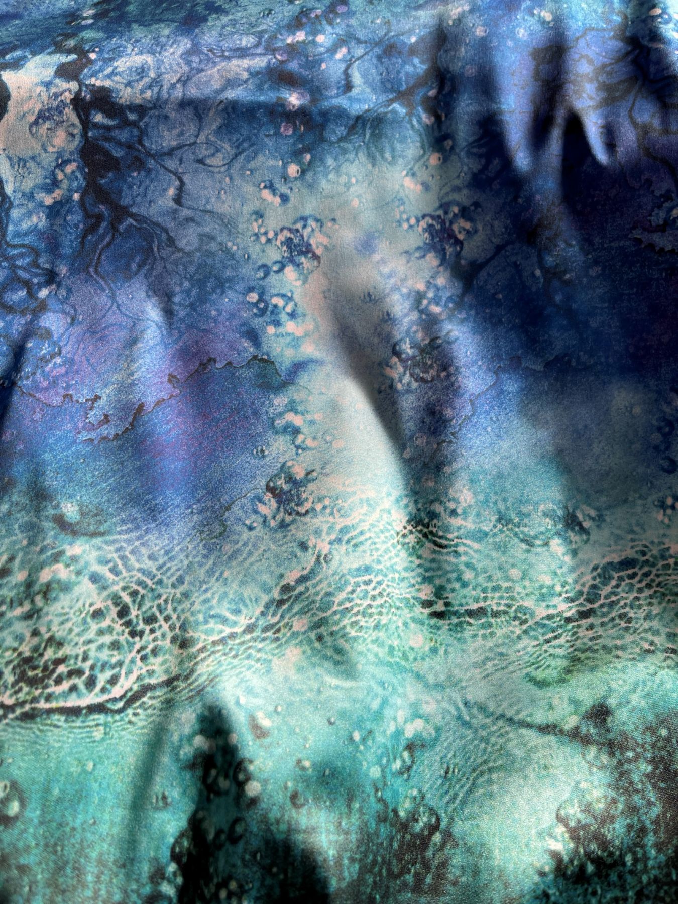 - Design: Abstrakter Ozean-Print in Blau- und Schwarztönen